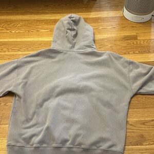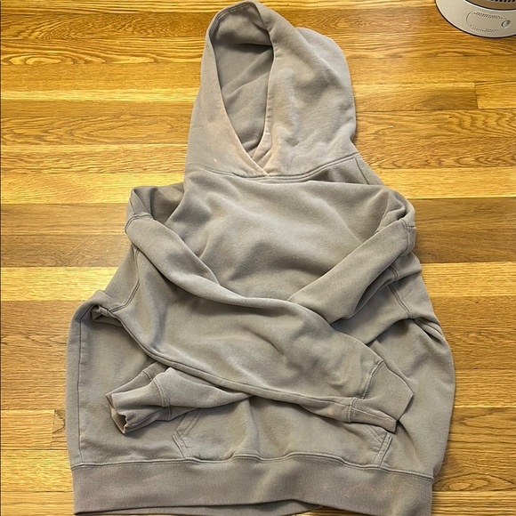 Tan colored sweatshirt, light bleach on the hood part. Worn a couple of times.
