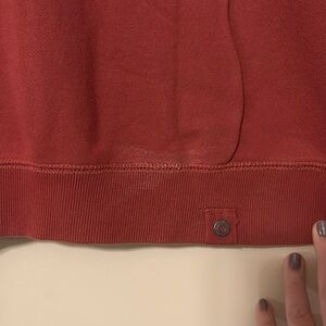 Simple crew neck hoodie. Some discoloration on the bottom hem but no other signs of wear. No rips or tears.