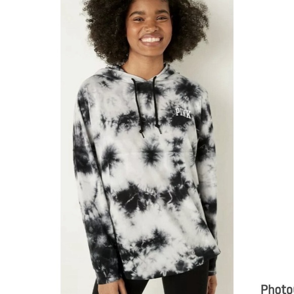 Brand new with tags, sweatshirt pullover hoodie from PINK Victoria’s Secret! Lightweight, black, white and gray tye dye with the logo in white in front and across the back. 100% cotton, size XXL.