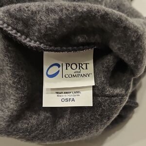 Fleece sweatshirt fabric and style with front pocket and black drawcords..