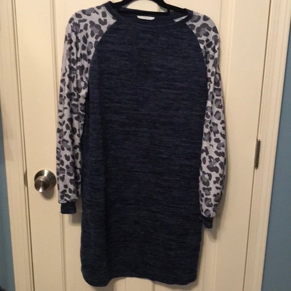 Very stylish and comfy sweatshirt dress! In great condition. Fits like a large. Has pockets!