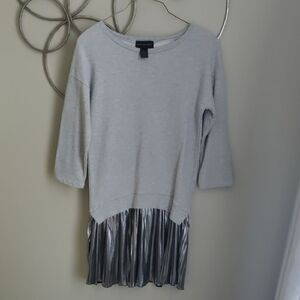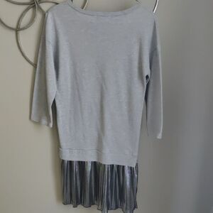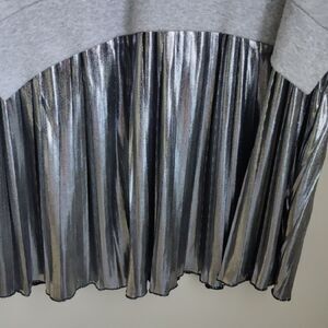 Know One Cares brand trendy gray tunic sweatshirt with attached metallic silver pleated skirt. Perfect for a chic casual look! EUC. One small black dot on skirt see photo...not noticeable. Size S.