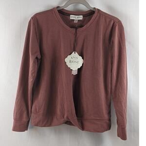 Sweatshirt Twist Front Long Sleeves Knox Rose Coral Small Pink Pullover Crewneck