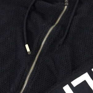 1 Tommy Hilfiger navy blue Sweatshirt! It is mesh so its see through! One of the ends on the string is missing! Size small!