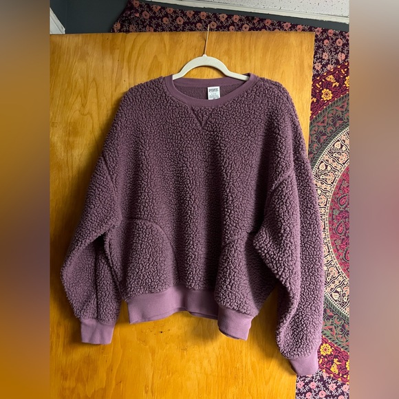 These were bought separately. They are both a mauve colored Sherpa material sweat suit. They are from PINK. Bottoms are size large and top is size medium.