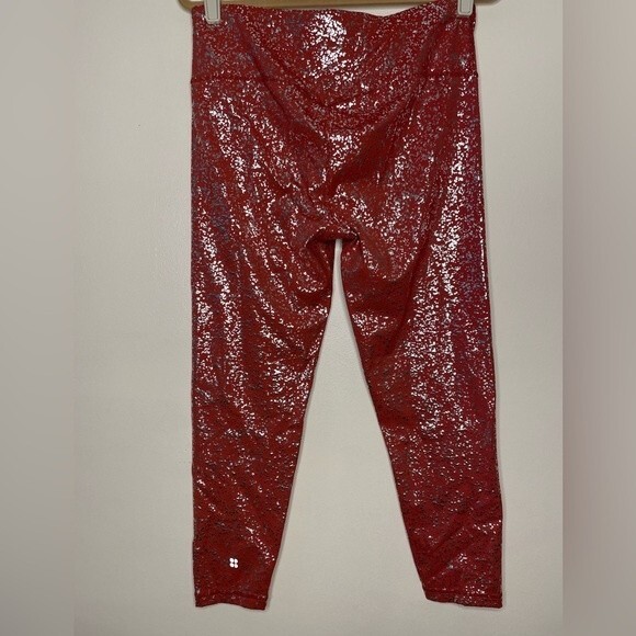 Sweaty Betty 7/8 Goddess Leggings Foil Print High Waisted Red Terrazzo Large