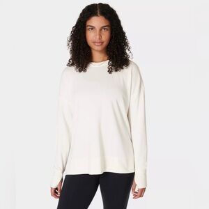 Dropped shoulders, cosy thumbholes and V-stitch detailing at the neck.