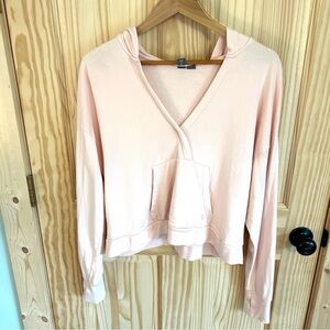 Sweaty Betty After Class Relaxed Hoodie. Size Medium. Pale pink color. French Terry. Thumb hole cuffs