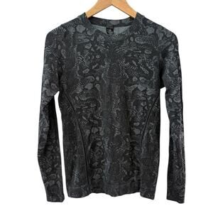 Sweaty Betty Animal Crew Neck Base Layer Top Black Snakeskin Size 8