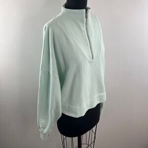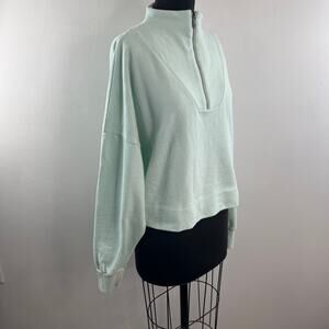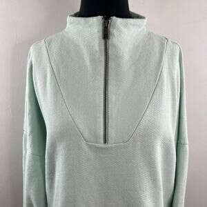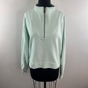 Sweaty Betty Blue Sweatshirt Mock Neck Half Zip Drop Shoulder Banded Hem Sz XXL
