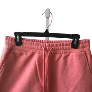 High rise. Elastic / drawstring waist. Front slant pockets. 90% cotton, 10% polyester. Color name is blush pink. Machine wash. New with tags.
