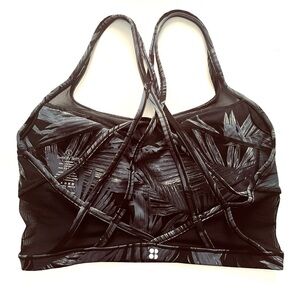 Sweaty Betty Celestial Yoga Crop Top Strappy Sports Bra Palm Leaf Print Size L