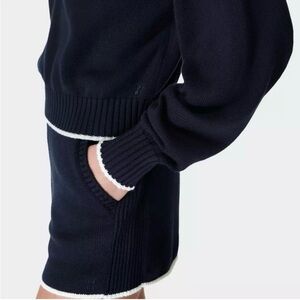 Sweaty Betty Coastal Knitted Set - Size XL - navy blue color with white trim - pre owned - excellent condition - relaxed fit sweater + shorts