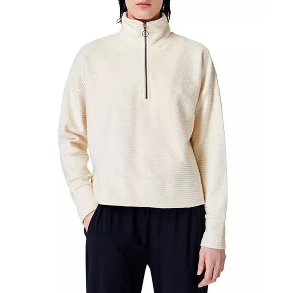 Sweaty Betty Cream Rest Up Half Zip Long Sleeve Textured Pullover Size 4