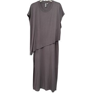 Gorgeous draped midi dress by Sweaty Betty in soft gray viscose-blend jersey. Effortless style with a modern twist โ the asymmetrical overlay creates flattering shape and movement. Ultra soft and stretchy, perfect for lounging, errands, or travel.
