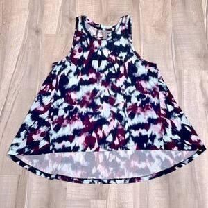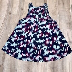 Sweaty Betty Easy Peazy Tank/Vest sustainable vest blue flow print tunic tank. Purple / blue Ikat tie dye soft cotton print