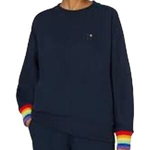 Sweaty Betty Essential Sweatshirt Rainbow Cuffs Oversized Pullover Navy Multi S