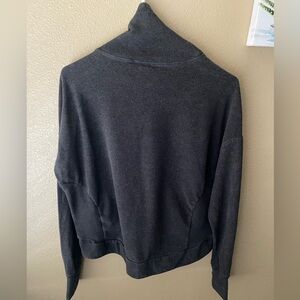 This Sweaty Betty Funnel Neck Cropped Sweatshirt in a charcoal grey color is made from their signature Luxe fabric—a cozy, ultra-soft blend of 45% cotton, 45% acrylic, and 10% elastane. It’s designed with a flattering cropped fit that’s slightly longer in the back for extra coverage and style. The ribbed side panels and ribbed funnel neck reduce bulk while still offering warmth and structure. Drawstrings at the neck allow for an adjustable fit, and it features functional front pockets for added convenience. If you’ve ever worn or felt this fabric, you know just how incredibly soft and comfortable it is—inside and out. This sweatshirt is a women’s size XS and is in great condition. Some measurements are included in the photos, and I’m happy to provide more upon request. Comes from a smoke-free home.