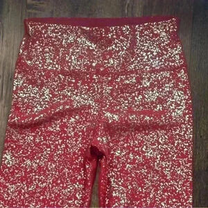 Sweaty Betty Goddess 7/8 Workout Leggings in Red Terrazzo Foil Print Size Small US 4-6 Athleisure Gym Active Wear Casual Futuristic Metal Barbiecore