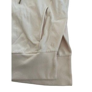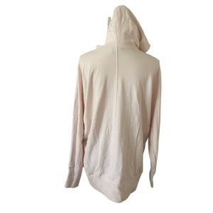 This Sweaty Betty hoodie is perfect for any active woman! The pink pullover sweater features thumbholes for added warmth during workouts and a high neck with hood for outdoor activities. The knit fabric is made of spandex, cotton, and acrylic for a comfortable fit, and the long sleeves make it suitable for both casual wear and activewear. The closure is a simple pullover style and the solid pattern is versatile for any occasion. This medium-sized sweatshirt is a regular fit and is suitable for all women. The brand is known for its quality activewear and this hoodie is no exception.