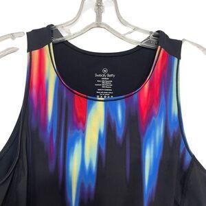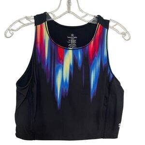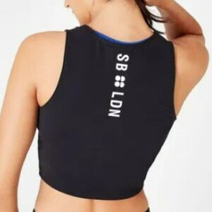 Sweaty Betty Kenza Black Strobe Placement Print Power Crop Gym Vest Tank Top