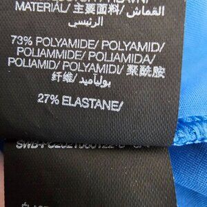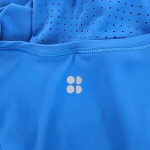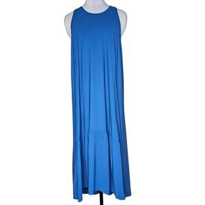 Blue racerback tank dress. Midi length. Swing style. Quick dry material. Perforated detail.