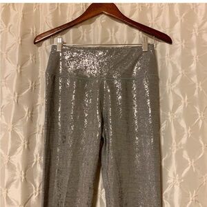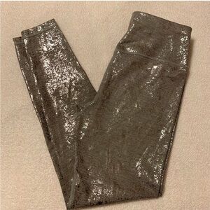 Sweaty Betty Metallic Silver Goddess Foil Leggings High Ride Activewear