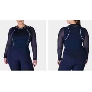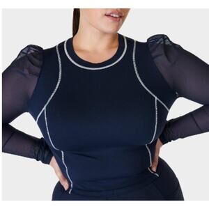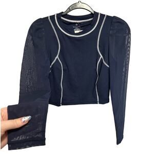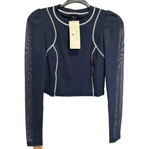 Sweaty Betty NWT Long Puff Sleeve Top In Navy Blue Size XS