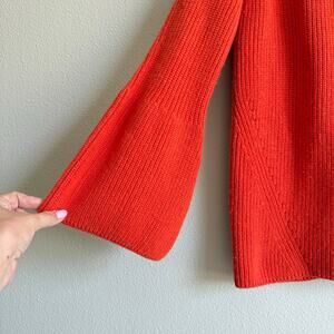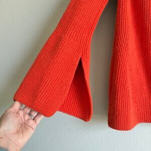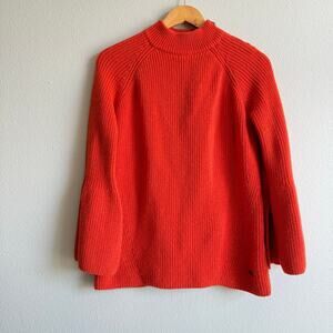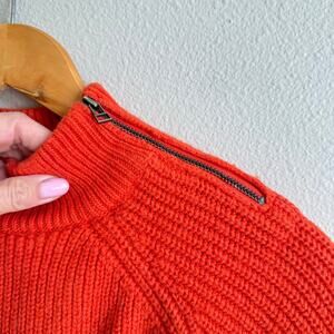 Sweaty Betty orange wool blend mock neck sweater. This is heavier weight, super soft and amazing quality! Zipper detail at shoulder. Flared sleeves. No flaws, pilling or significant wear. 49% wool, 47% cotton, 3% polyamide, 1% elastane.