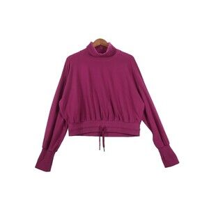 Sweaty Betty Pink Fuchsia Cropped Turtleneck Drawstring Velour Sweatshirt Yoga L