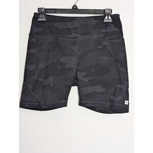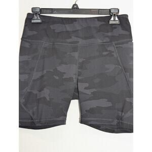 Sweaty Betty Power 6 inch Black Camo Shorts Zipper Front Size 8-10
