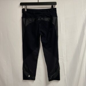 Sweaty Betty Power Crop Shiny Mesh Panel Leggings Black Size Small