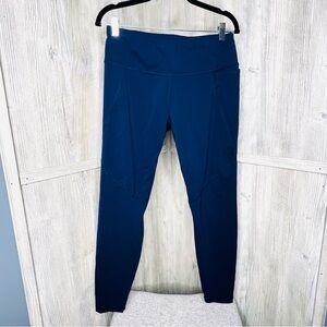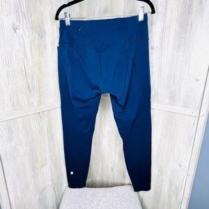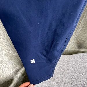 Navy Blue Sweaty Betty Full Length. 27” Leggings. Waist laid and measured flat approx 15”. Side pocket at Hip and Secure Hidden Zip Pocket at Back.