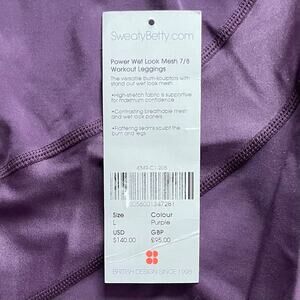 Sweaty Betty Power Wet Look Mesh 7/8 leggings. Size large. Excellent condition. Purple color. Zip pocket.