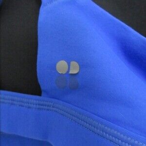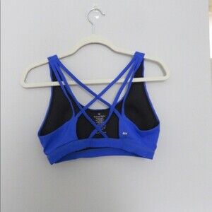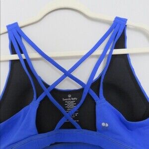 Sweaty Betty Sports Bra Dare to Bare Cobalt Blue Silver Infinity Cross Back Logo