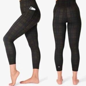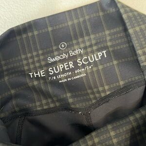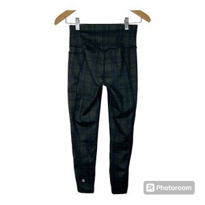 Sweaty Betty Super Sculpt 7/8 Length Leggings Side Pocket Green Plaid Sz S