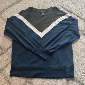 Sweaty Betty Sweater Colorblock Chevron Sweatshirt Retro blue white gray medium