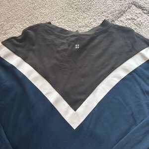 Sweaty Betty Sweater Colorblock Chevron Sweatshirt Retro blue white gray