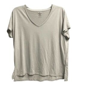 Light gray Sweaty Betty V-Neck Tee, short sleeves, very breathable and great for gym or out and about.