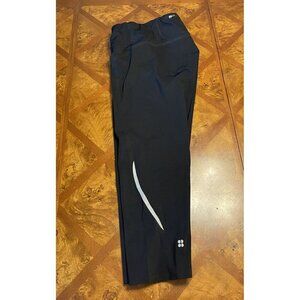 Sweaty Betty Women's Cropped Leggings Black Sz L Zip Back Pocket Reflective