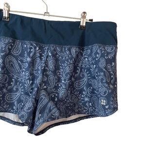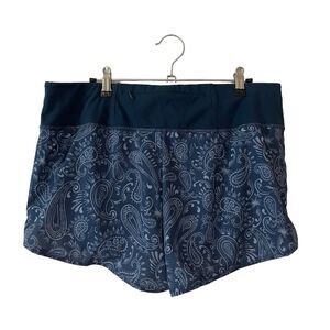 Sweaty Betty XL Running Short Dark Blue Paisley Print Zip Pocket Lined