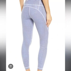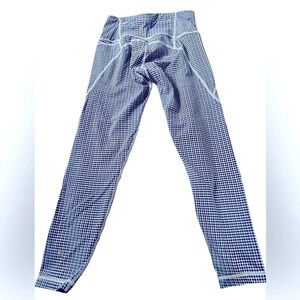 Sweaty Betty Power 7/8 Leggings in size XS, featuring a blue check/dot print. Designed with sculpting seams, sweat-wicking fabric, and 4-way stretch for comfort and performance. These leggings are high rise with a supportive waistband and a flattering fit. Like new condition.