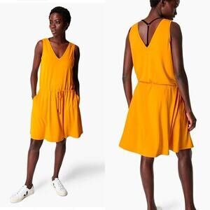 Sweaty Betty Yellow Take It Easy Waist Tie Drawstring Dress Size Small