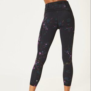 Sweaty Betty Zero Gravity High Waisted 7/8 Leggings in Black Daisy Print sz S