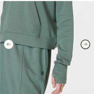 EUC Sweaty Betty green sweatshirt hood after class hoodie thumb holes 6