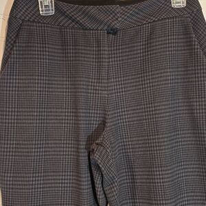 In very good used condition no flaws. Grey and black plaid with front pockets. Double hook zipper and button closure. Medium weight