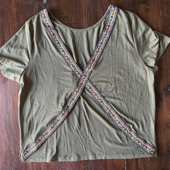 NWOT Sweaty Rocks Contrast Panel V-Back T Size L Army Green (runs small)