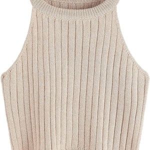 SweatyRocks Women's Knit Crop Top Ribbed Sleeveless Halter Neck Vest Tank Top