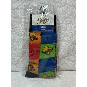 Sweda Adult Crew Socks Size 4-10 MTV Pattern Music Notes Colorful Novelty