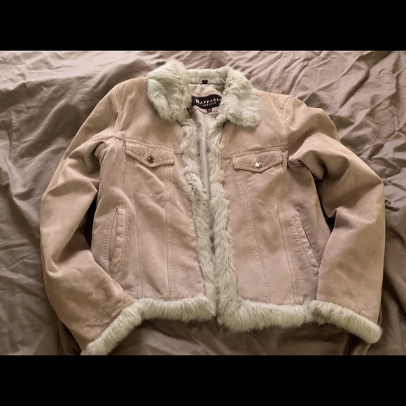 Size Small Silver-Blue Swede Jacket with fur trim.